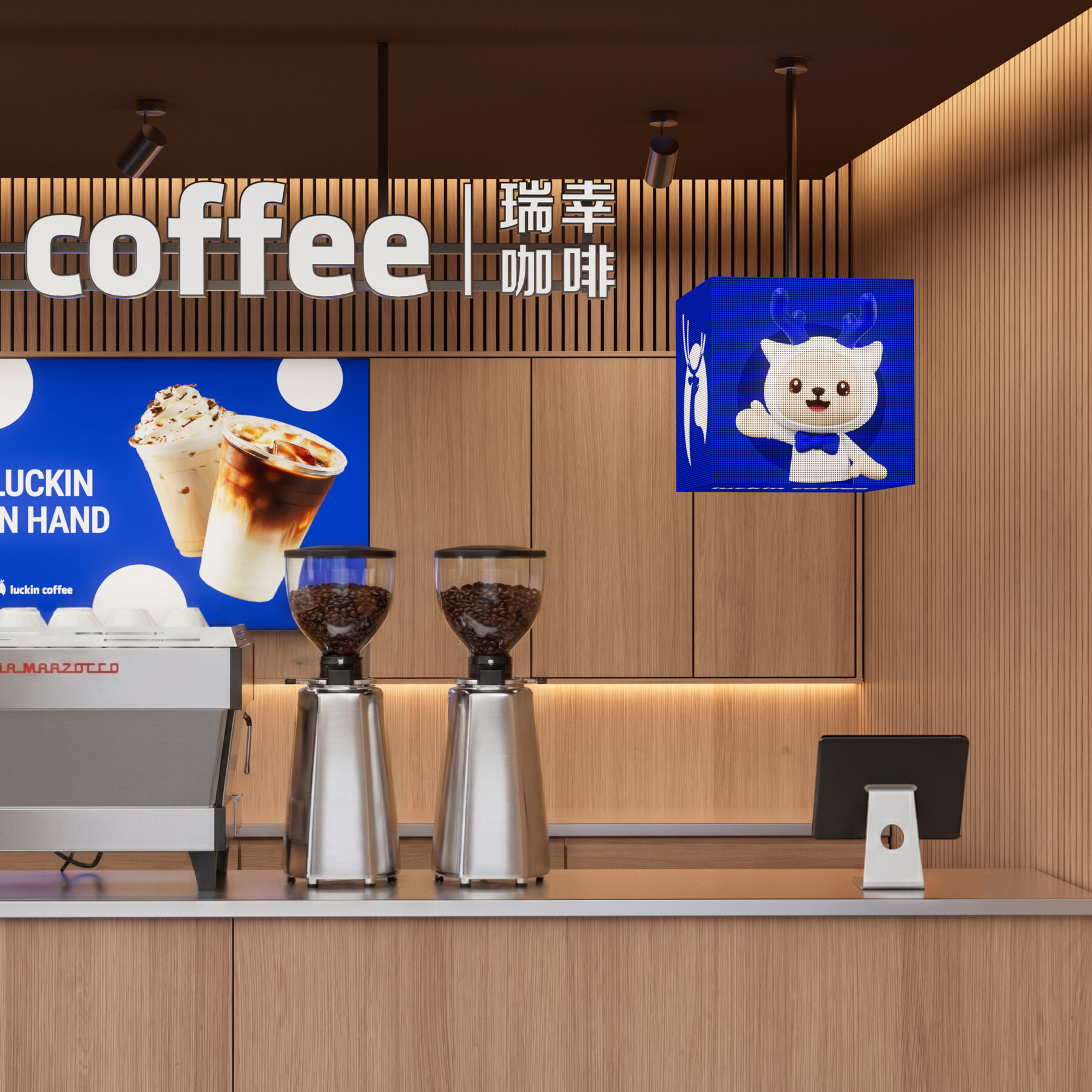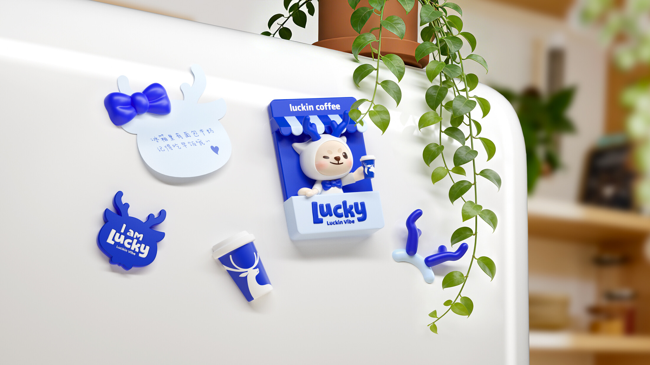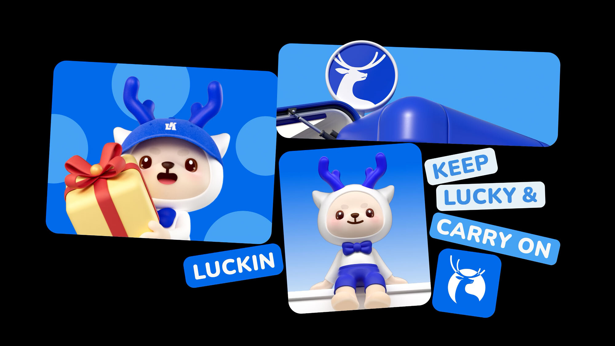 基于瑞幸原有的品牌资产,我们为其塑造了全新的品牌IP形象——Lucky。这只拥有蓝色鹿角的智慧之鹿,它不仅是品牌经典标识的生动延续,更是“幸运”价值的传承与人格化表达。IP设计跳脱传统低幼化风格,以简洁当代的手法勾勒出聪明、敏捷且具时尚感的形象,在强化品牌识别之余,构建了更具温度的情感连接。