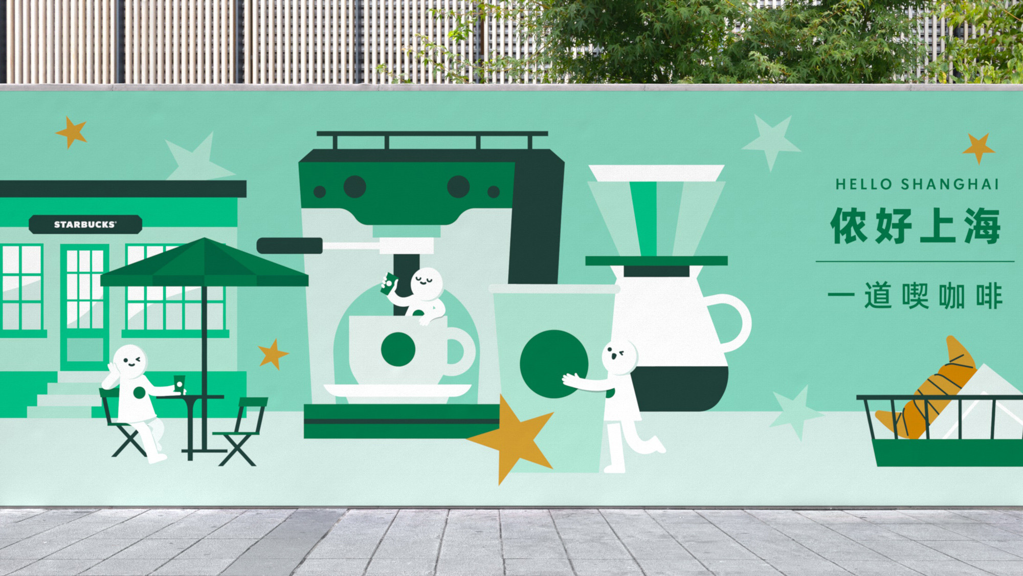 我们将所有的元素进行整合,使其适配于不同尺寸的物料,并能轻松运用在线上及线下不同的触点中。在每一家星巴克门店中,你都能发现有星人的身影。